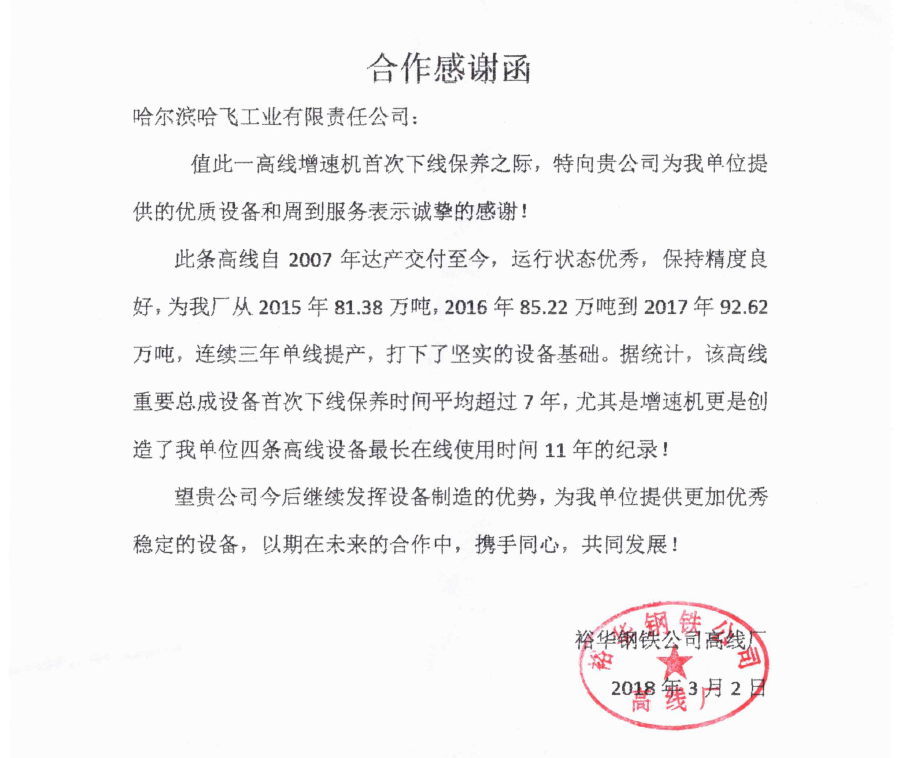 哈爾濱哈飛工業(yè)有限責(zé)任公司旗下的機(jī)電設(shè)備制造產(chǎn)業(yè)是目前國(guó)內(nèi)規(guī)模大、專業(yè)的高速線材軋機(jī)和棒材軋機(jī)整機(jī)及備件的生產(chǎn)制造企業(yè)。公司現(xiàn)坐落于哈爾濱市平房區(qū)汽車零部件工業(yè)園B區(qū),占地面積30000多平方米?,F(xiàn)有員工近550人,其中具有中高級(jí)職稱的研發(fā)及工程技術(shù)人員100余人。 公司曾獲得冶金部授予的“高線軋機(jī)設(shè)備優(yōu)單位”稱號(hào)、國(guó)家技術(shù)進(jìn)步二等獎(jiǎng)等獎(jiǎng)項(xiàng),公司生產(chǎn)的十八項(xiàng)高線軋機(jī)重要部件通過(guò)了技術(shù)鑒定... +MORE